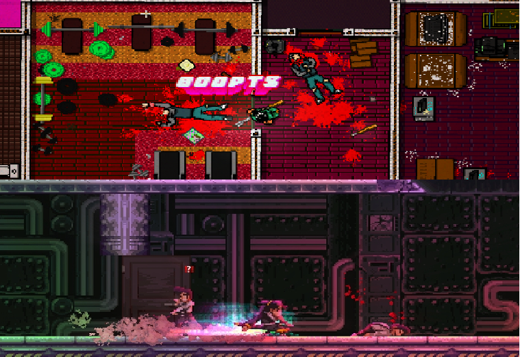 First, let’s address the elephant in the room. Yes, Katana Zero is very much like Hotline Miami. If you were working the Epic Games slave pits, constantly updating Fortnite, and weren’t able to check out Hotline Miami, let me set the scene. Hotline Miami is a top-down action game consisting of wild neon pixels, a pounding soundtrack, and buckets of blood. You’re tasked with executing everyone in the level in a very John Wick style. The game encourages a frantic run and gun mentality as getting hit once by a stray bullet or punch lands you right back at the beginning of the level. Unlike Ape Out, Hotline Miami doesn’t want to delay you from the frantic action as it almost instantly resets the level upon death. This allows for the breakneck pace to continue even when a level is wiping the floor with you. Hotline Miami also kickstarted the belief that every Devolver Digital game had to be a love letter to the 80s consisting of retro technology and drugs. Now, a lot of these elements are in Katana Zero, but I wouldn’t call Katana Zero a Hotline Miami clone. These two compare similarly to the comparison of Dark Souls and Sekiro: Shadows Die Twice. The framework is very much the same, but the devil is in the details.