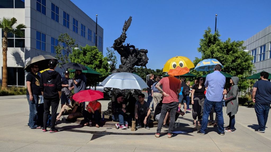 Employees within Blizzard have also expressed outrage at the Blitzchung banning. Some employees organized a walkout. They were seen gathered around the massive Orc statue, the iconic symbol of the Irvine, California Blizzard campus. They dawned umbrellas referencing the 2014 pro-democracy Hong Kong movement known as the Umbrella Movement. The same Orc Statue has the company’s core values around the circular base. Two of those core values are “Think Globally” and “Every Voice Matters”. Some staff members covered up these two plaques believing the company no longer represented these two values. An action that I not only agree with but actively applaud.